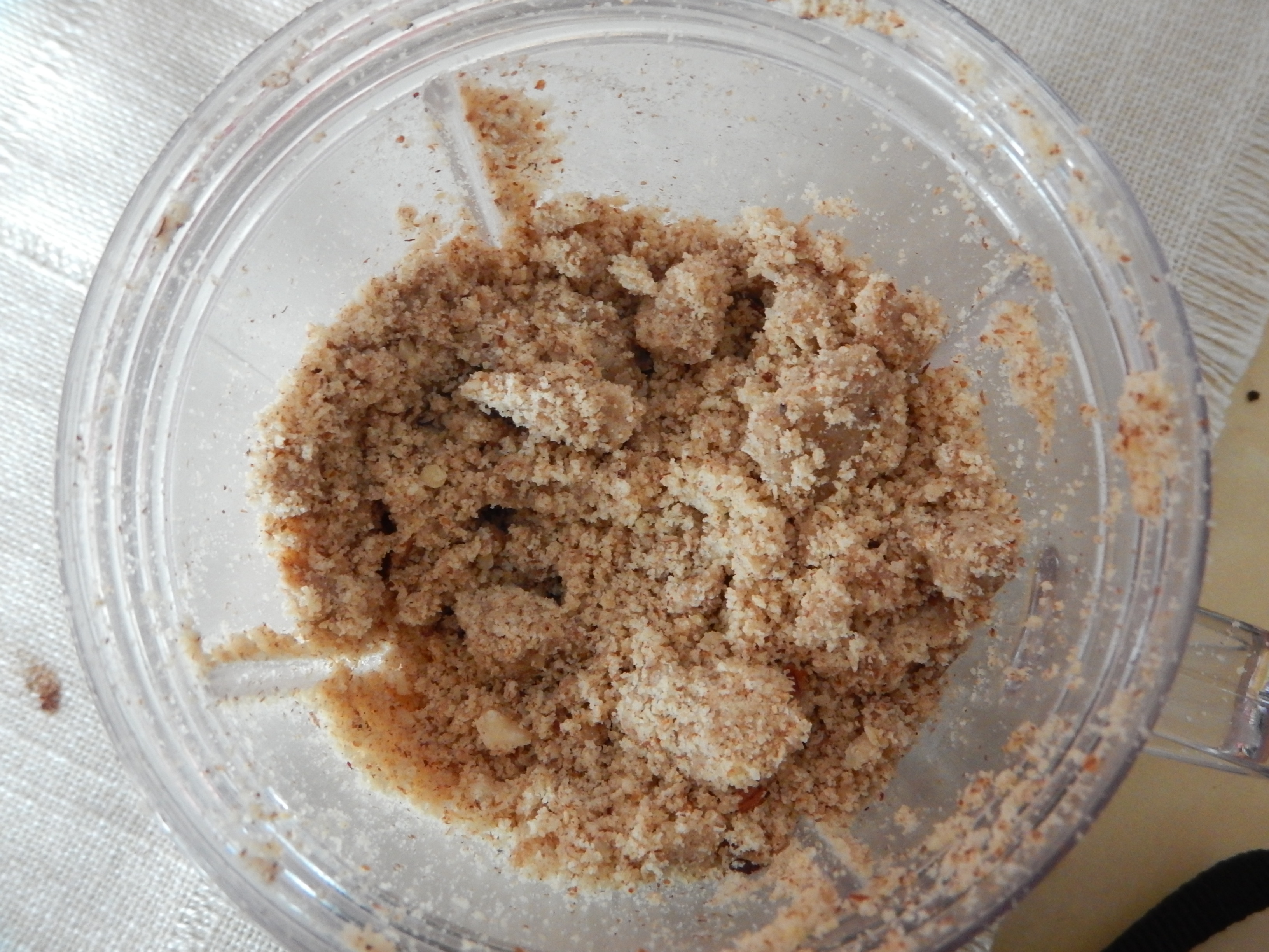 With the milling blade I started the blitzing and the shaking and the blitzing to get the hazelnuts looking like this: