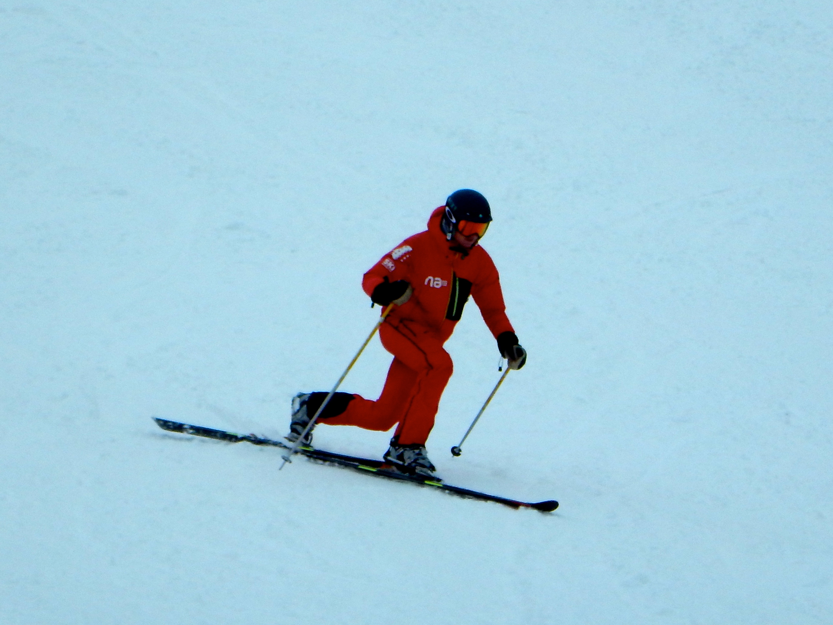 My lesson this morning was cancelled (the clients were not even in resort…) and by 11am I had cleared it with my boss that training for the BASI level 2’s that afternoon would consist of them starting on a second discipline. We also agreed that Telemarking would help their Alpine skiing, too. Anything to challenge balance, co-ordination and sliding skills (plus everyone’s dignity) is always going to be beneficial. Sadly, as Telemarking was so popular today, the shop ran out of kit and two of my trainees had to practice their Central Theme demonstrations (straight running, snowplough and parallel turns)…